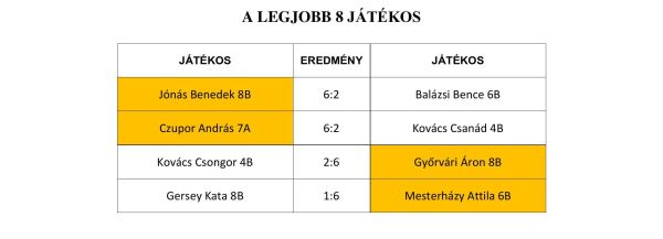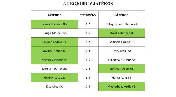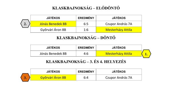 A 2025/2026-ös tanév klaskbajnokságának végeredménye